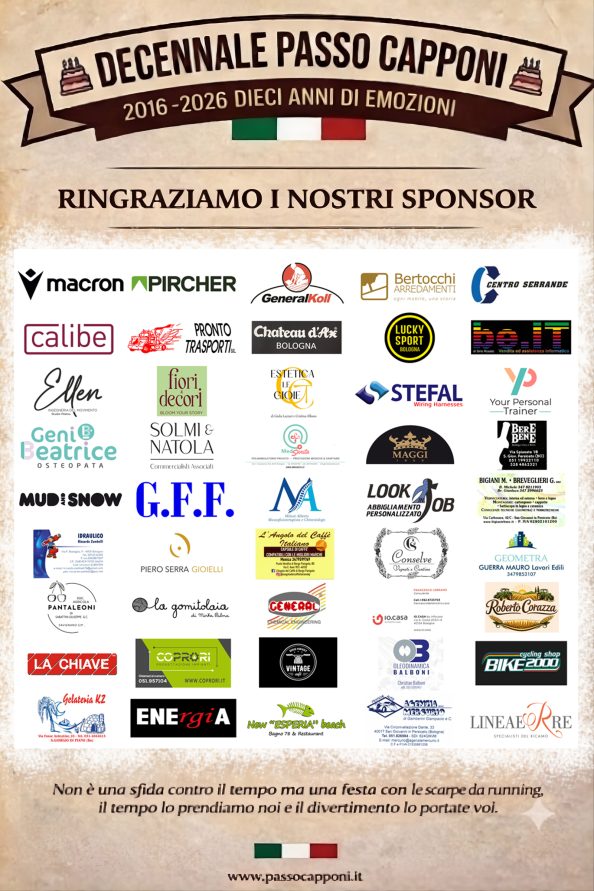 Grazie a tutti i nostri sponsor che hanno contribuito alla realizzazione della festa del decennale del Passo Capponi